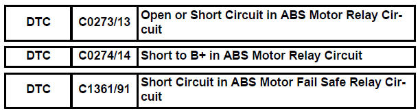 The ABS motor relay supplies power to the ABS pump motor. While the ABS & TRAC & VSC are activated, the ECU switches the ABS motor relay ON and operates the ABS pump motor.
