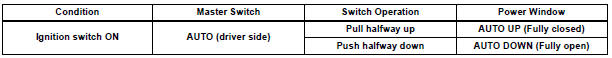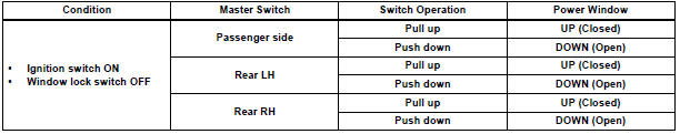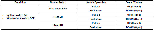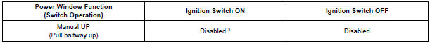 *: However, manual UP function of the power window is operative when fully pulling up the power window switch.