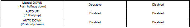 NOTICE: If the power window motor has been reset, raise and lower the door glass several times using MANUAL function before performing the check.
