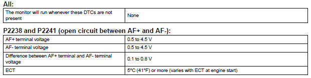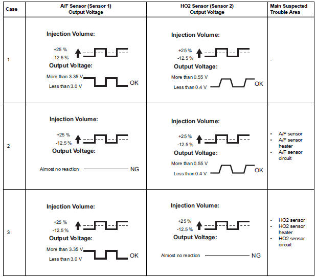| NOTICE: The Air-Fuel Ratio (A/F) sensor has an output delay of a few seconds and the Heated Oxygen (HO2) sensor has a maximum output delay of approximately 20 seconds. |