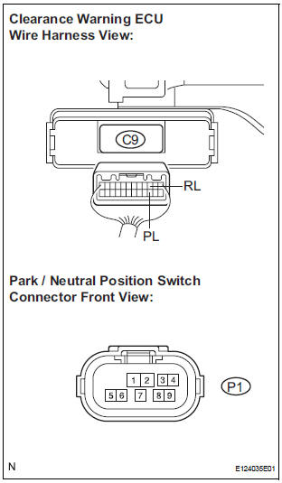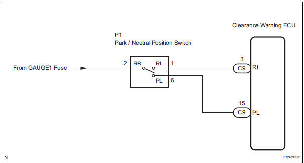 The clearance warning ECU receives the reverse or park position signal from the park / neutral position switch.