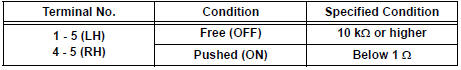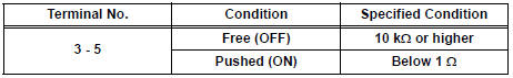 If the result is not as specified, replace the switch.