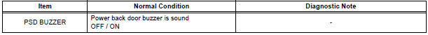 HINT: During the ACTIVE TEST, the intelligent tester sends a signal to the power back door ECU to drive the warning buzzer. If the warning buzzer operates, the warning buzzer itself and the wire harness between the warning buzzer and power back ECU are considered to be functioning normally.