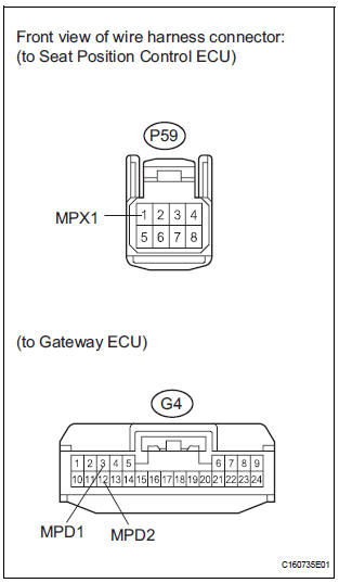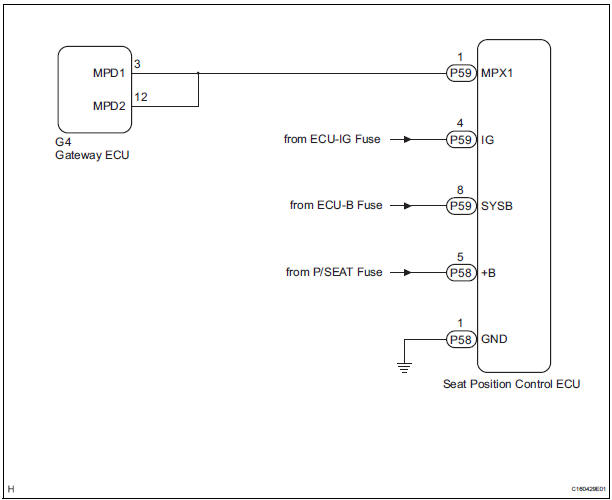 This DTC is detected when communication between the seat position control ECU and the multiplex network gateway ECU stops for more than 10 seconds.