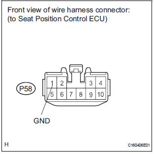 2 CHECK HARNESS AND CONNECTOR (SEAT POSITION CONTROL ECU - GROUND)