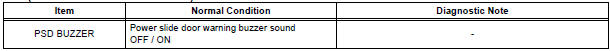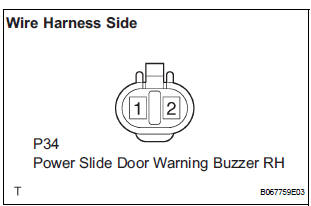 HINT: During the ACTIVE TEST, the intelligent tester sends a signal to the power slide door ECU RH to activate the warning buzzer. If the warning buzzer is activated, the warning buzzer itself and the wire harness between the warning buzzer and power slide door ECU RH are considered to be functioning normally.