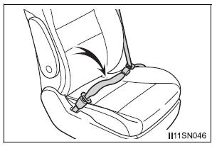 Adjustable shoulder anchor (front and second outside Tip-up seats) Always make sure the shoulder belt is positioned across the center of your shoulder. The belt should be kept away from your neck, but not falling off your shoulder. Failure to do so could reduce the amount of protection in an accident and cause death or serious injuries in the event of a sudden stop, sudden swerve or accident. Seat belt damage and wear