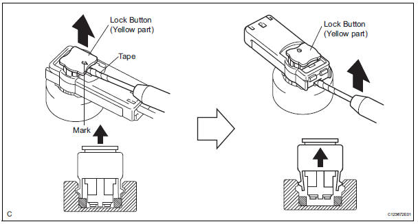 (a) Release the lock button (yellow part) of the connector using a screwdriver.