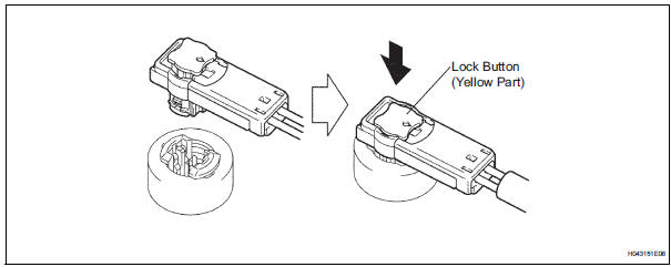 (b) Push down securely on the lock button (yellow part) of the connector. (When locking, a click sound can be heard.)
