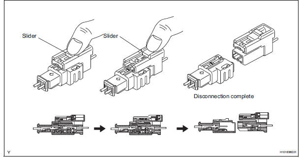(a) Place a finger on the slider, slide the slider to release the lock, and then disconnect the connector.