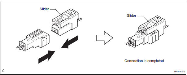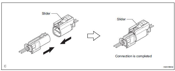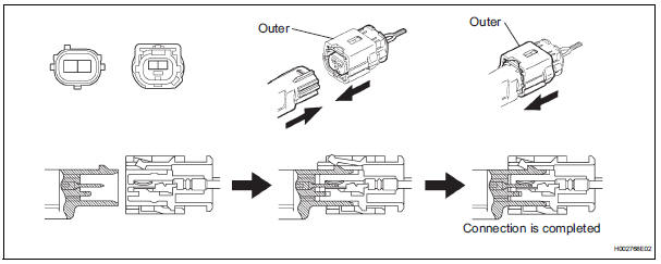 (a) Connect the connector as shown in the illustration (When locking, make sure that the outer returns to its original position and a click sound can be heard).