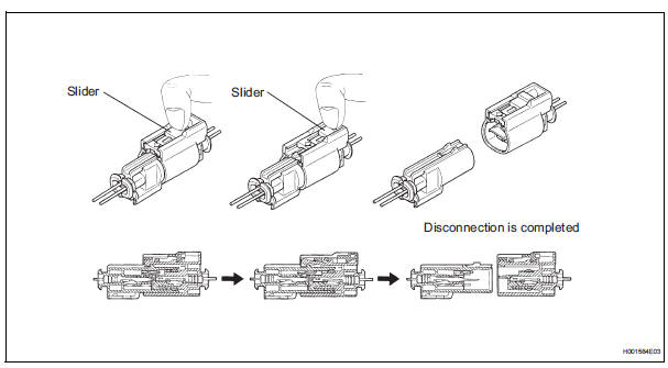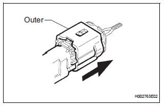 (a) While holding both the sides of the outer connector locking sleeve, slide the outer in the direction shown by the arrow.
