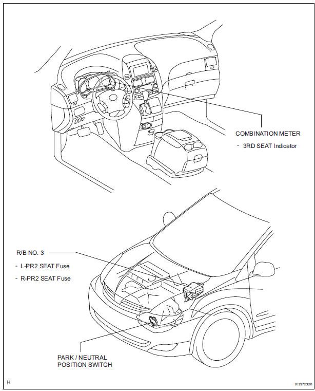 1. Before operating the power rear no. 2 seat with stowing function, make sure that there is nothing in the path of the seat.