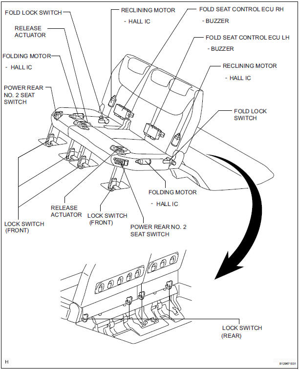 2. Before operating the power rear no. 2 seat with stowing function, make sure that there is nothing on the seat.