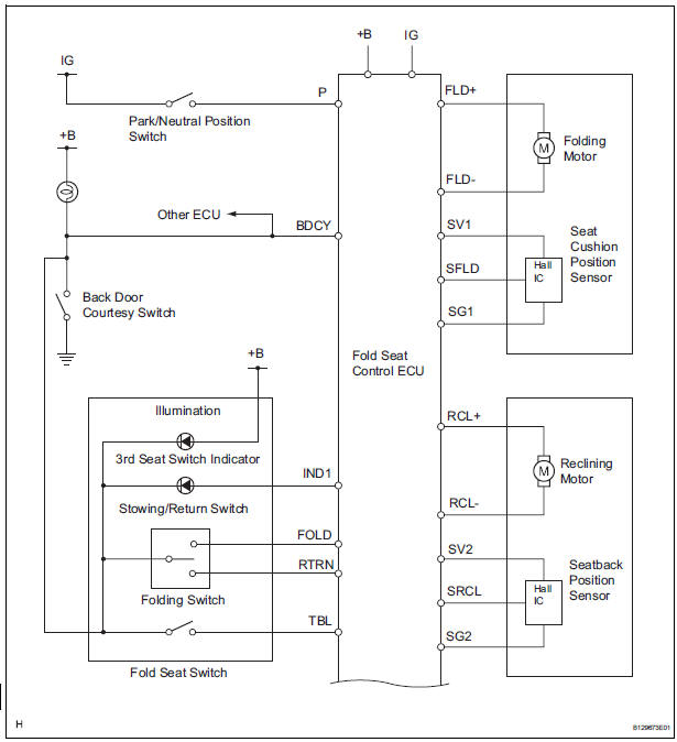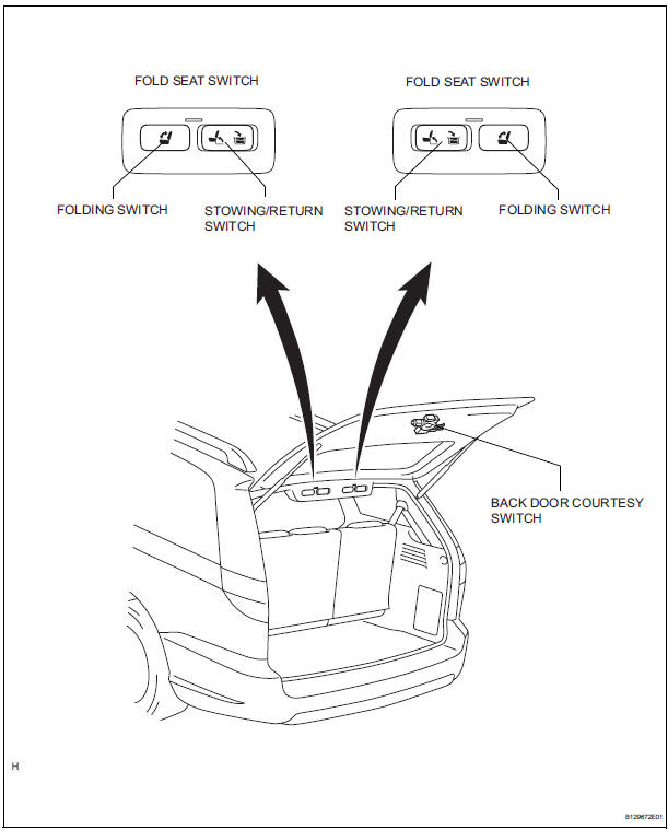 HINT: If the system detects that an object is caught in the seat when the folding switch is operated, operating the stowing switch right after the detection will not cause the seat to move.