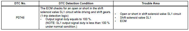 The ECM commands gear shifts by turning the shift solenoid valves "ON/OFF". When there is an open or short circuit in any shift solenoid valve circuit, the ECM detects the problem and illuminates the MIL and stores the DTC. And the ECM performs the fail-safe function and turns the other normal shift solenoid valves "ON/OFF" (In case of an open or short circuit, the ECM stops sending current to the circuit.) (See page AX-30).