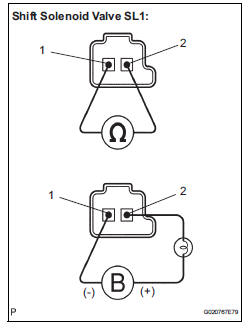 (c) Connect the positive (+) lead with a 21 W bulb to terminal 2 and the negative (-) lead to terminal 1 of the solenoid valve connector, then check the movement of the valve.