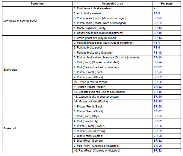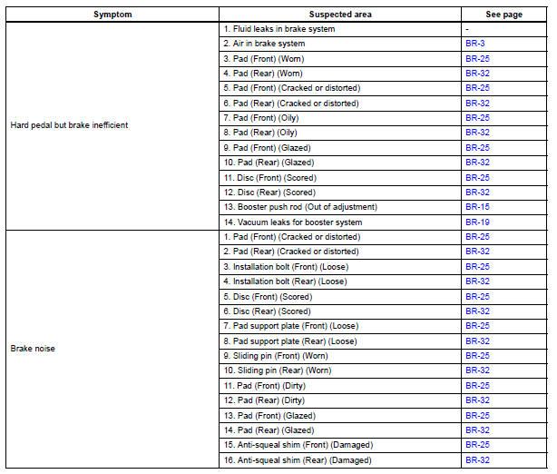 HINT: Refer to the table below to help locate find the cause of the problem. The numbers indicate the priority of the possible cause of problem. Check each part in the order. If necessary, replace these parts.