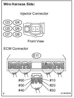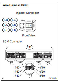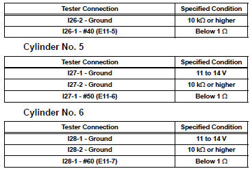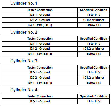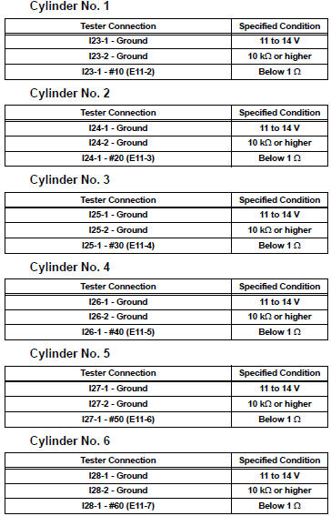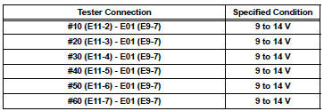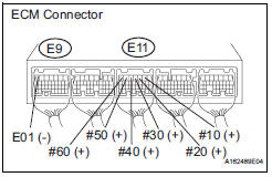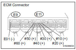 11 INSPECT ECM TERMINAL OF MISFIRING CYLINDER (#10, #20, #30, #40, #50 AND /OR #60 VOLTAGE)