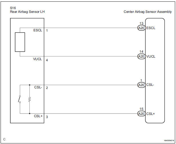 The curtain shield squib LH circuit consists of the center airbag sensor