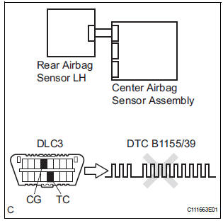 DTC B1155/39 is recorded when a malfunction is detected in the rear airbag sensor LH circui