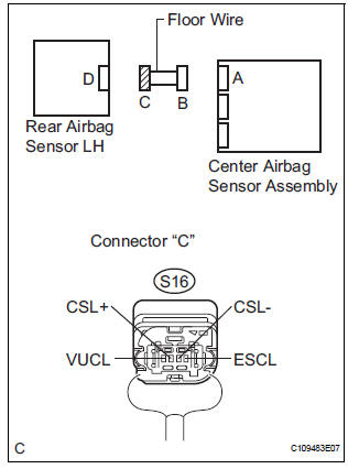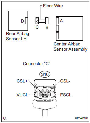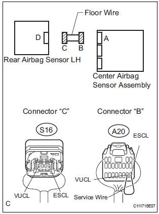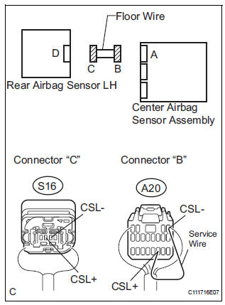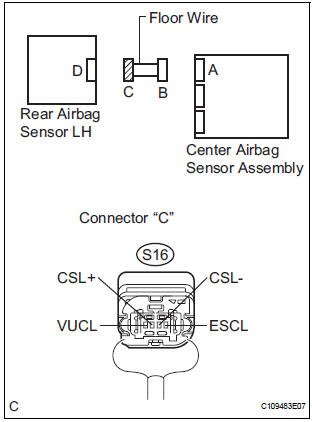 The rear airbag sensor LH circuit consists of the center airbag sensor assembly and rear airbag sensor LH.