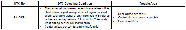 DTC B1154/38 is recorded when a malfunction is detected in the rear airbag sensor RH circuit.
