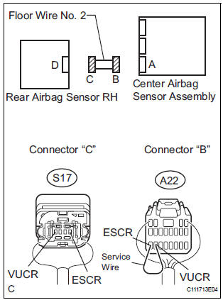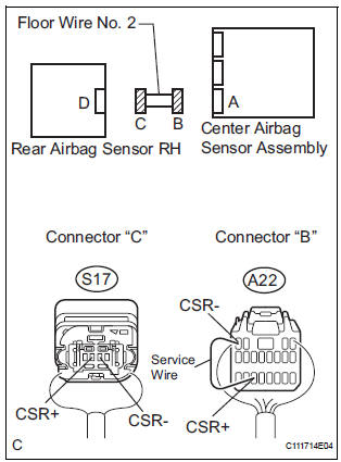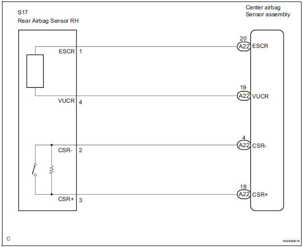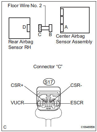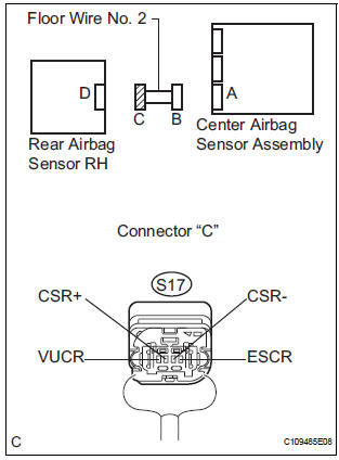 The rear airbag sensor RH circuit consists of the center airbag sensor assembly and rear airbag sensor RH.