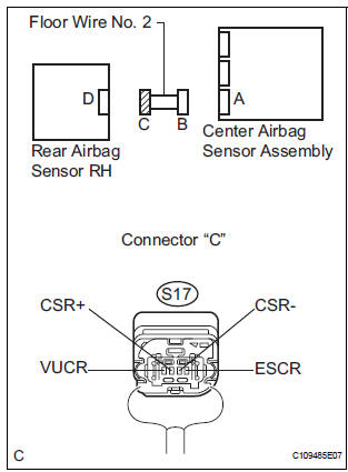 If the center airbag sensor assembly receives signals from the rear airbag sensor RH, it judges whether or not the SRS should be activated.