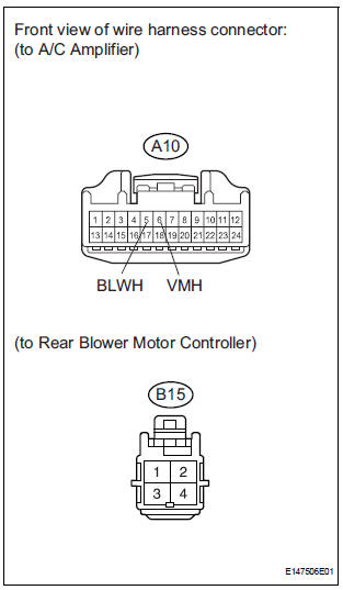 6 CHECK HARNESS AND CONNECTOR (REAR BLOWER MOTOR CONTROLLER - A/C AMPLIFIER)