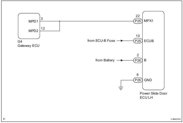 1 CHECK HARNESS AND CONNECTOR (POWER SLIDE DOOR ECU LH - BATTERY)