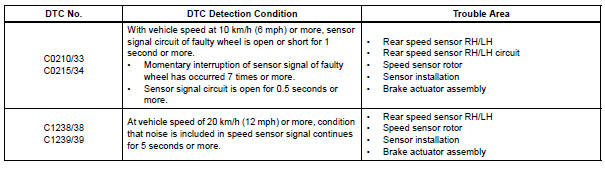 DTCs C1273/73 to C1278/78 can be deleted when the speed sensor sends a vehicle speed signal or the Test Mode ends. DTCs C1273/73 to C1278/78 are output only in the Test Mode.