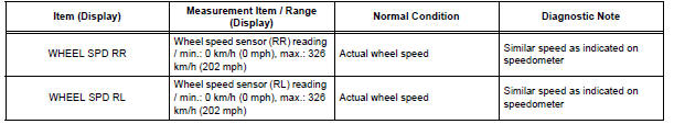 1 READ VALUE OF INTELLIGENT TESTER (REAR SPEED SENSOR)