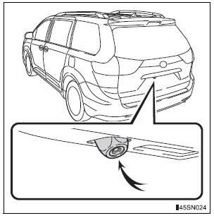 The camera for the rear view monitor system is located above the license plate.