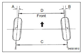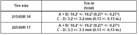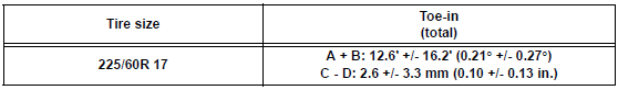 HINT: If the toe-in is not within the specified value, inspect the suspension parts and replace them if necessary.