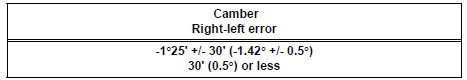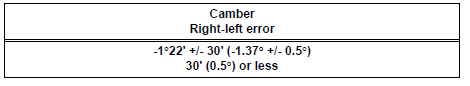 HINT: If the measured value is not within the specified value, inspect the suspension parts for damage and the wear and replace them if necessary because camber is not adjustable.