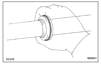(d) Install the rack steering piston ring onto the power steering rack, and settle it down with your fingers.