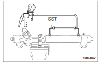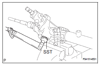 (b) Using SST, install the left turn pressure tube onto the power steering gear assembly.