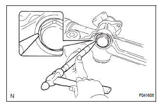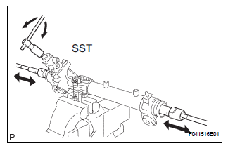 Torque: Preload (turning) 1.2 to 1.5 N*m (12.2 to 15.3 kgf*cm, 10.6 to 13.3 in.*lbf) (k) Remove the RH and LH steering rack ends subassembly.