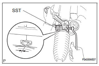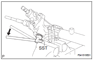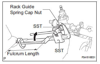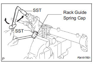 SST 09616-00011 (e) Using SST, loosen the rack guide spring cap until the compression spring is not functioning.