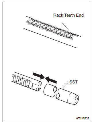(a) To prevent the steering rack teeth from damaging the oil seal lip, temporarily install the RH and LH steering rack ends sub-assembly.