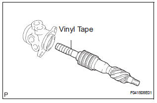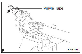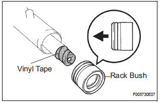 (c) To prevent rack bush oil seal lip damage, wind vinyl tape around the rack end, and apply power steering fluid.
