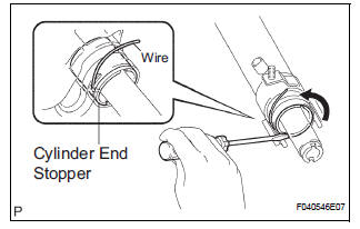 (c) Using a screwdriver, turn the cylinder end stopper counterclockwise by 450 +- 50°.