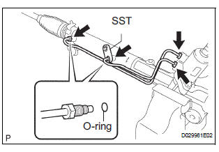 (a) Coat 2 new O-rings with power steering fluid and install them onto the left turn pressure tube.