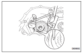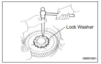 Torque: 350 N*m (3,569 kgf*cm, 258 ft.*lbf) (g) Using a chisel and hammer, stake the front lock washer.