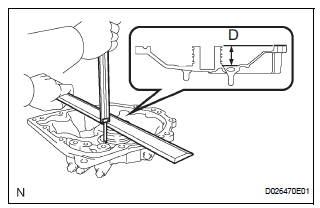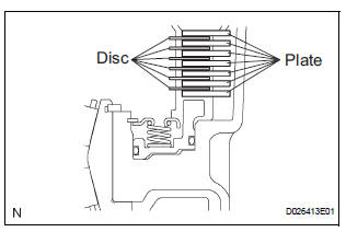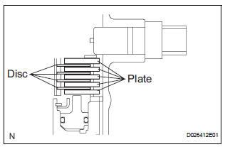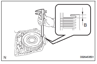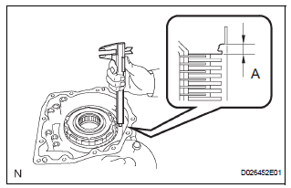 (a) Using vernier calipers, measure the distance between the disc surface and the contact surface of the 2nd brake cylinder and transaxle case (Dimension A).