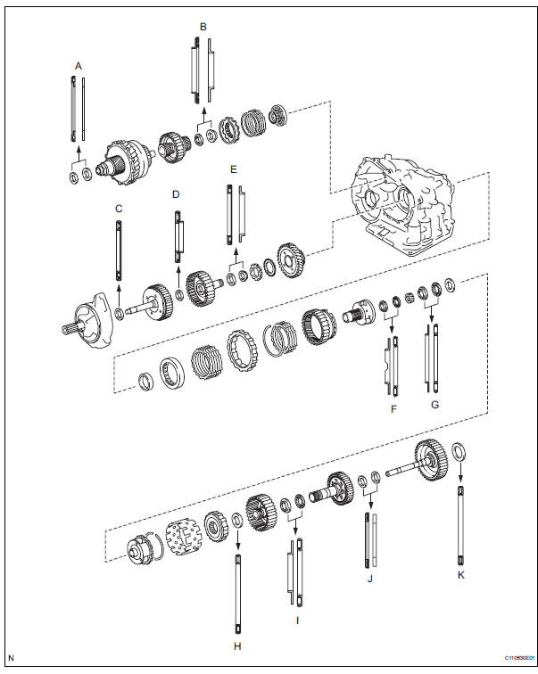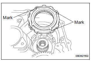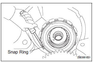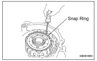 | NOTICE: Confirm that the snap ring is fixed in the groove of the 1st and reverse brake hub correctly. |