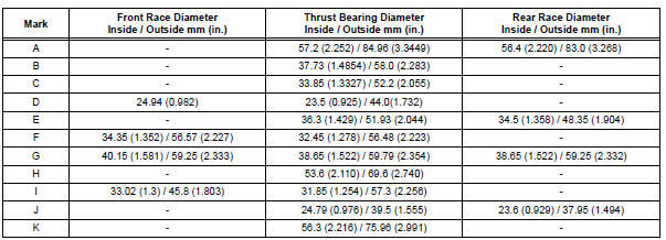 0.51 to 1.02 N*m (5.1 to 10.0 kgf*cm, 4.4 to 8.7 in.*lbf) Used Bearing: 0.26 to 0.51 N*m (2.7 to 5.2 kgf*cm, 2.3 to 4.5 in.*lbf)