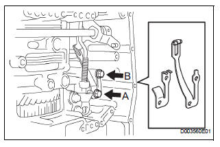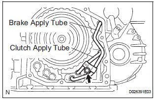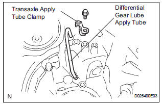 (a) Install the differential gear lube apply tube and transaxle apply tube clamp with the bolt to the transaxle housing.