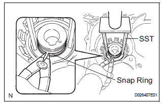 SST 09387-00020 (b) Using a snap ring expander, install the snap ring to the transaxle case.